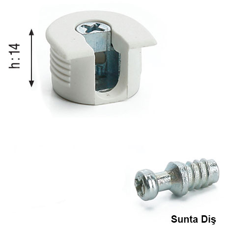 Kilitli Gömme Raf Pimi Sunta Diş Beyaz 18 mm Sunta İçin